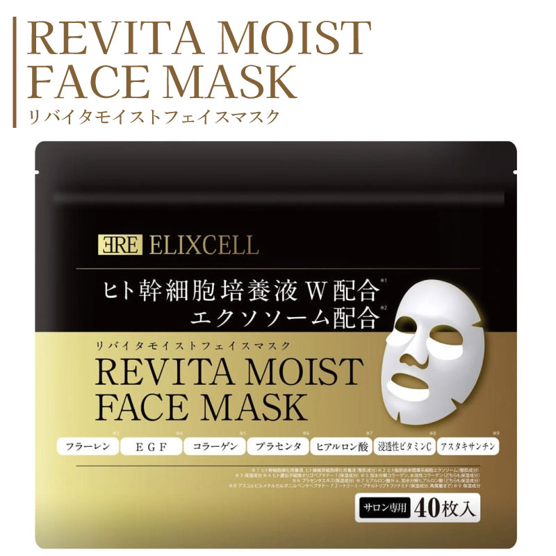 エリクセル リバイタモイスト フェイスマスク 40枚 ヒト幹細胞 EGA FGF プラセンタ ヒアルロン酸 ビタミンC シートマスク パック 高保湿 シミ しわ エイジング