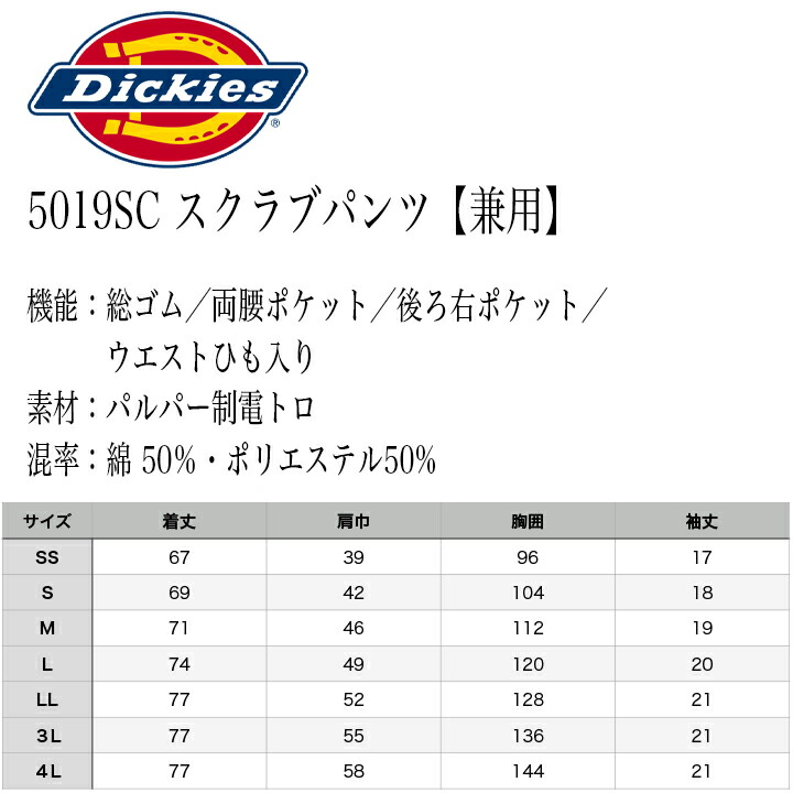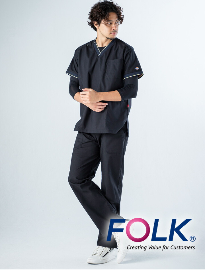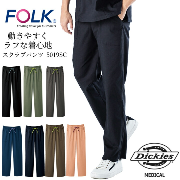 フォーク スクラブパンツ 白衣 ディッキーズ FOLK Dickies 5019SC ストレートパンツ ストレッチ ユニフォーム 医療用 病院 クリニック 7040sc 男女兼用