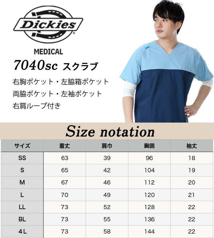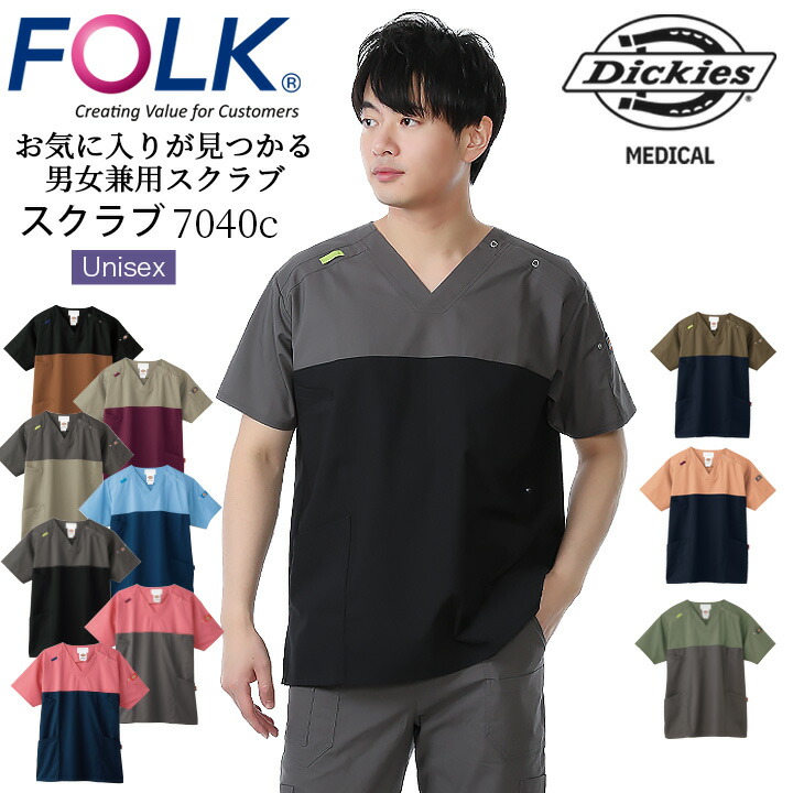 フォーク FOLK スクラブ 白衣 ディッキーズスクラブ ディッキーズDickies フォーク 7040SC スクラブ ストレッチ ユニフォーム 医療用 病院 白衣 クリニック 術衣