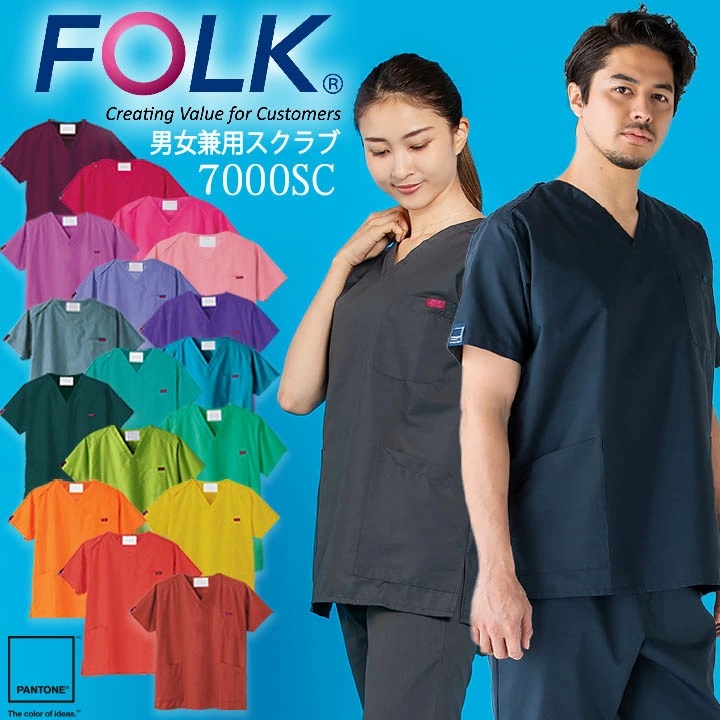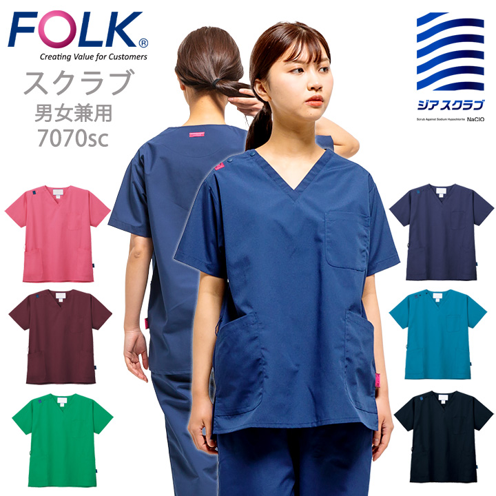 フォーク FOLK スクラブ 医療 上衣 ケーシードクター レディーススクラブ(男女兼用) フォーク7070sc ユニフォーム 医師 医療用 看護師 クリニック 023sc 術衣