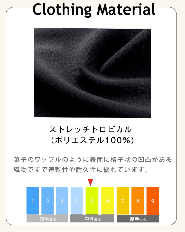 | 素材 | ストレッチトロピカル(ポリエステル100%) |