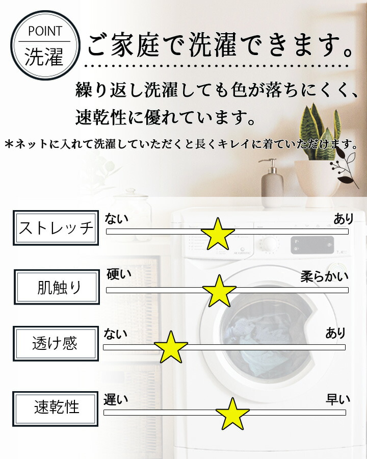 | 機能 | 細め仕様・ノータック・ストレッチ |