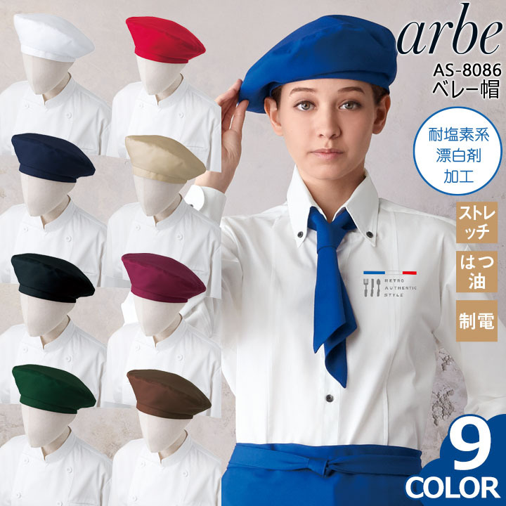 ベレー帽 アルべ arbe AS-8086 男女兼用 カフェ 飲食店 サービス業 制服 レストラン ユニフォーム チトセ ストレッチ はつ油 制電 マジックテープ