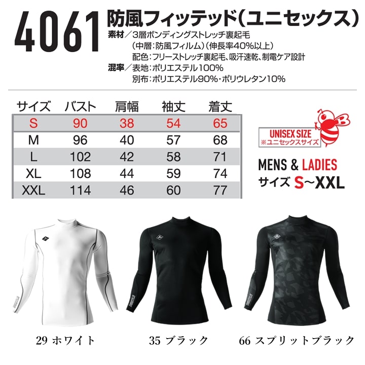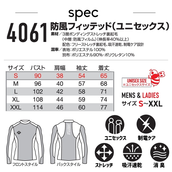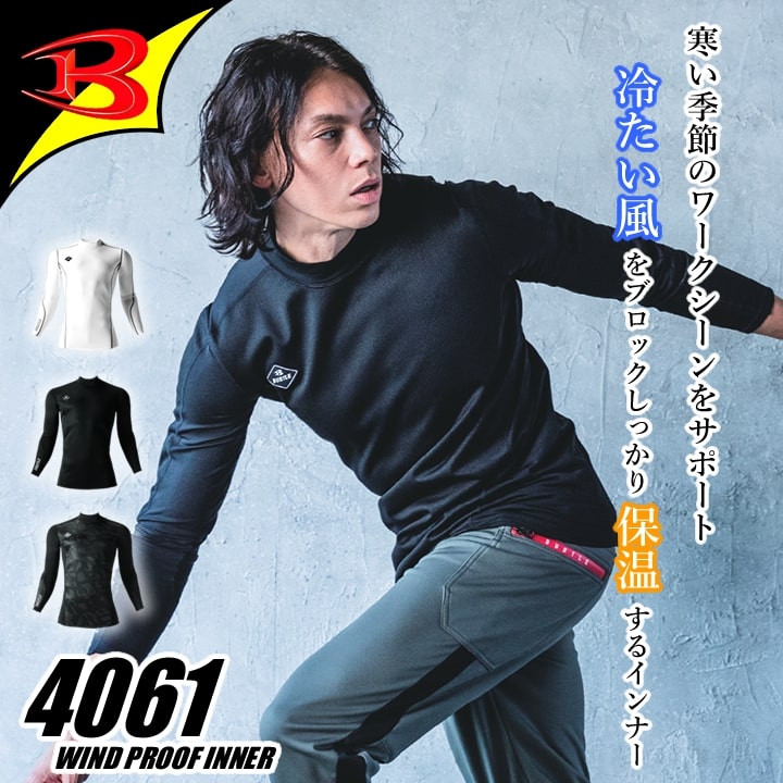 バートル 防風 長袖インナーウェア 4061 防風フィッテッド 保温 裏起毛 冬用 コンプレッション 吸汗速乾 消臭 ストレッチ