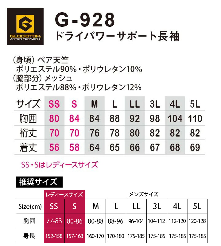 長袖インナーウェア ドライパワーサポート コーコス G-928 男女兼用 コンプレッション ストレッチ 接触冷感 吸汗速乾 消臭 作業服 CO-COS SS-3L 即日発送