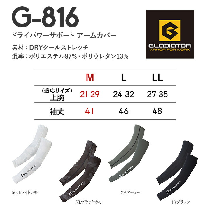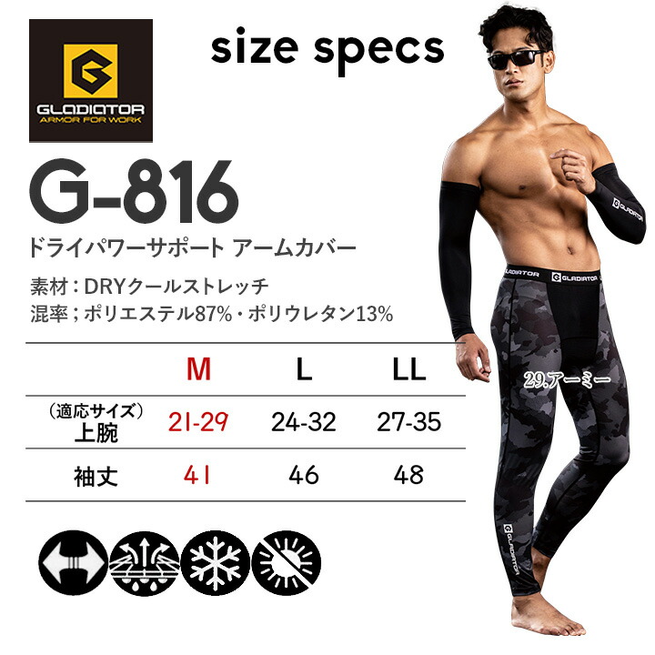 即日発送 グラディエーター 接触 UVカット ドライパワーサポート G-816 春夏 男女兼用 男女兼用 スポーツ コー