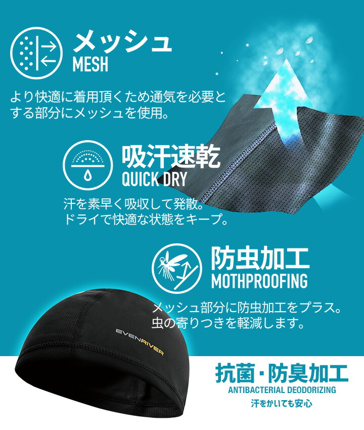 | 説明 特徴 | イーブンリバー人気のGTシリーズから高機能インナーシリーズが進化を遂げて登場。 暑い季節でも快適に着用できるアイスコンプレッションシリーズ。 ナイロン素材特有のヒンヤリ感で冷感を体感できるヒンヤリインナーウェア。 冷感性と吸汗速乾性を兼ね備えいつでも快適な着心地を実現。 切り替え部分にメッシュ素材を使用しており通気性にも優れています。 さらにメッシュ部分には防虫加工が施され蚊などが寄りつきにくい仕様。 抗菌防臭加工も施されおり暑い季節に心強いアイスコンプレッションインナーキャップ。 【特徴】 ● 接触冷感・吸汗速乾 ● 抗菌防臭加工 ● 防虫加工 |