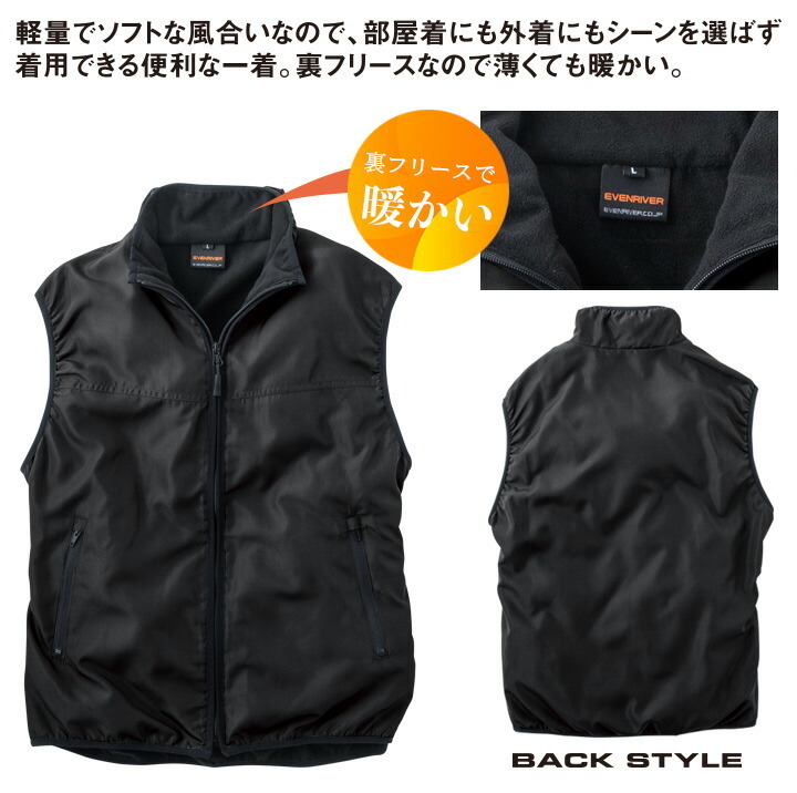 防寒 マイクロベスト イーブンリバー R-005 フリース 軽量 秋冬 防寒服 防寒着 作業着 作業服 EVENRIVER アウトドア 即日発送