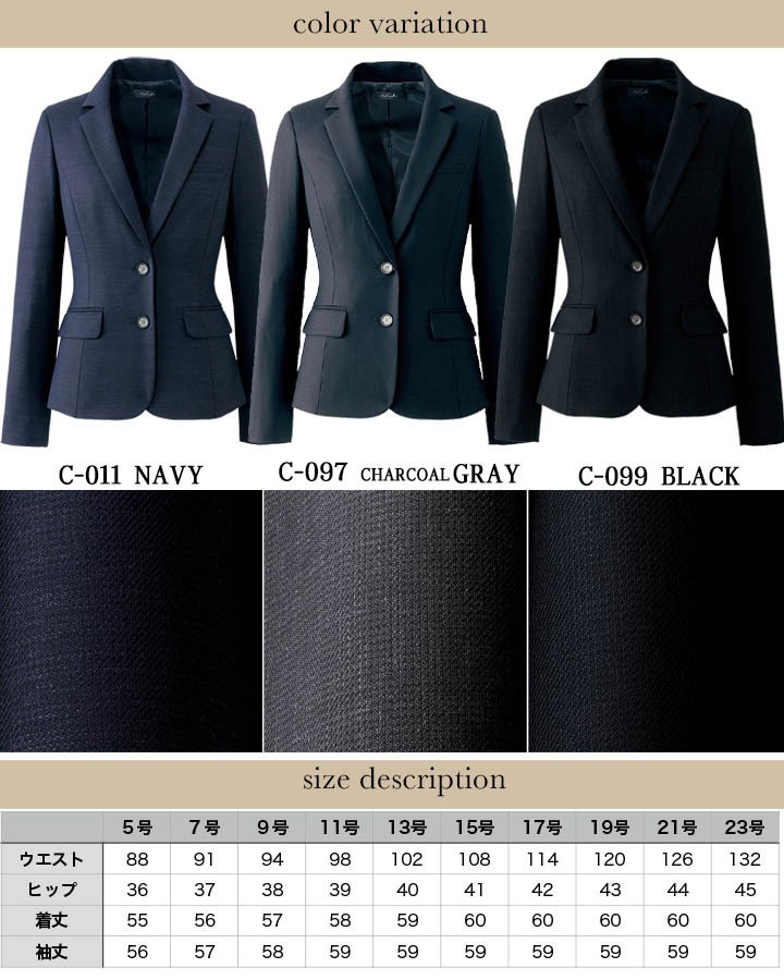 ●仕様:左胸ポケット、両脇ポケット、静電裏地、内ポケット3コ