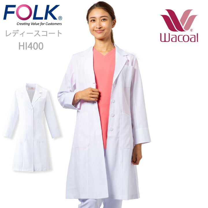 フォーク FOLK 白衣 コート レディース ドクターコート フォークhi400 女性用 医療 医師 薬剤師 通気性 軽量 ワコール シングルコート スタイリッシュコート