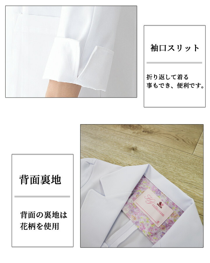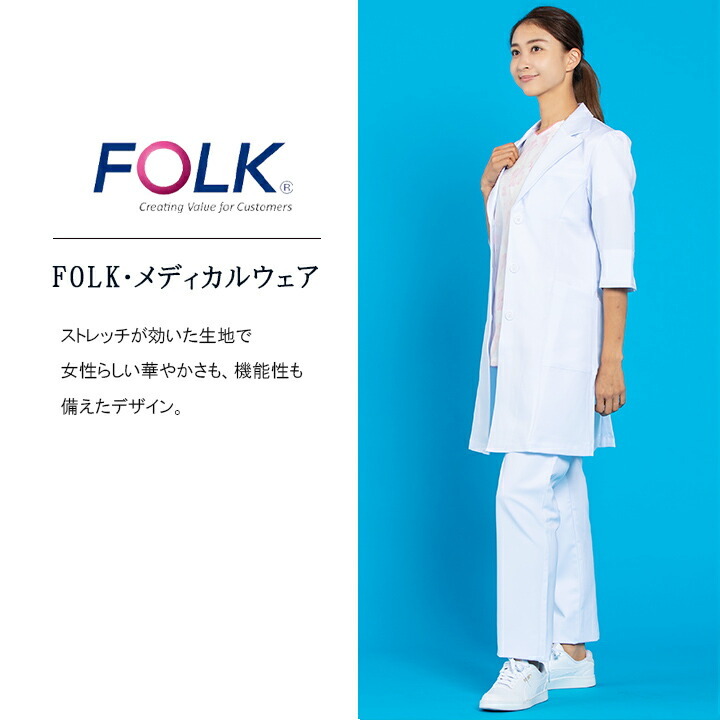 フォーク FOLK 白衣 コート レディース ドクターコート ワコールコート 女性用 医療 医師 薬剤師 通気性 フォーク HI402 ワコール フォーク シングルコート