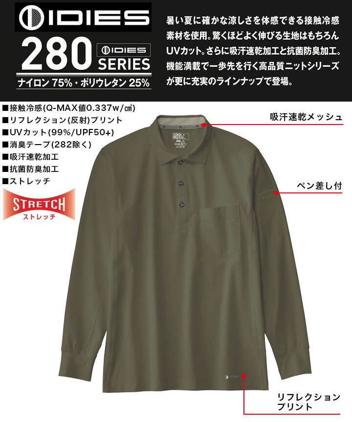 即日発送 ポロシャツ 男女兼用 長袖 接触 反射プリント UVカット 消臭テープ 抗菌 防臭 ホシ服装 HOSHI 285 スポ
