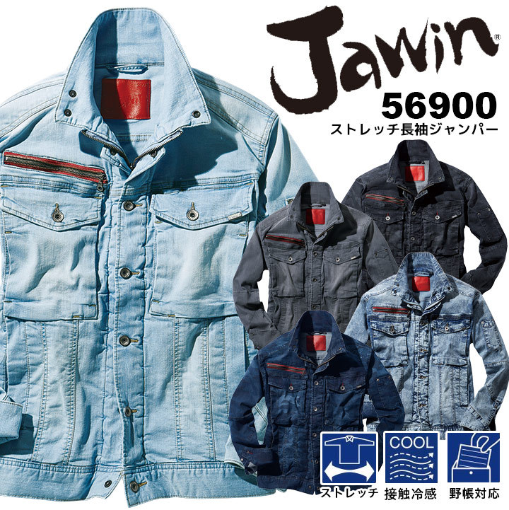 夏用 デニム 作業着 デニム ジャウィン デニム ストレッチ 長袖ジャンパー 56900 接触冷感 夏用 ジャケット 春夏 自重堂 作業着 作業服