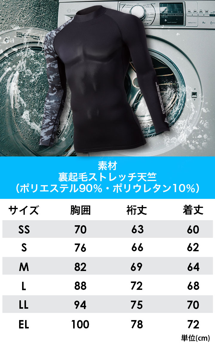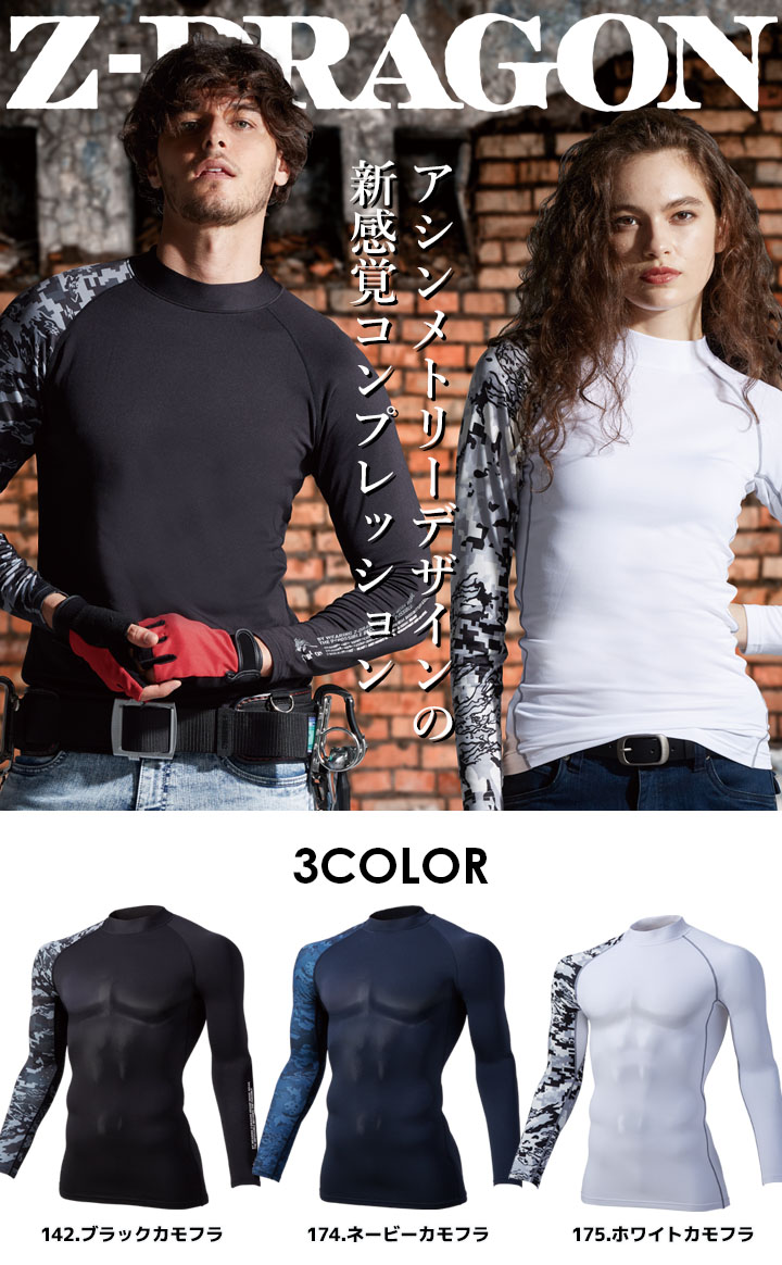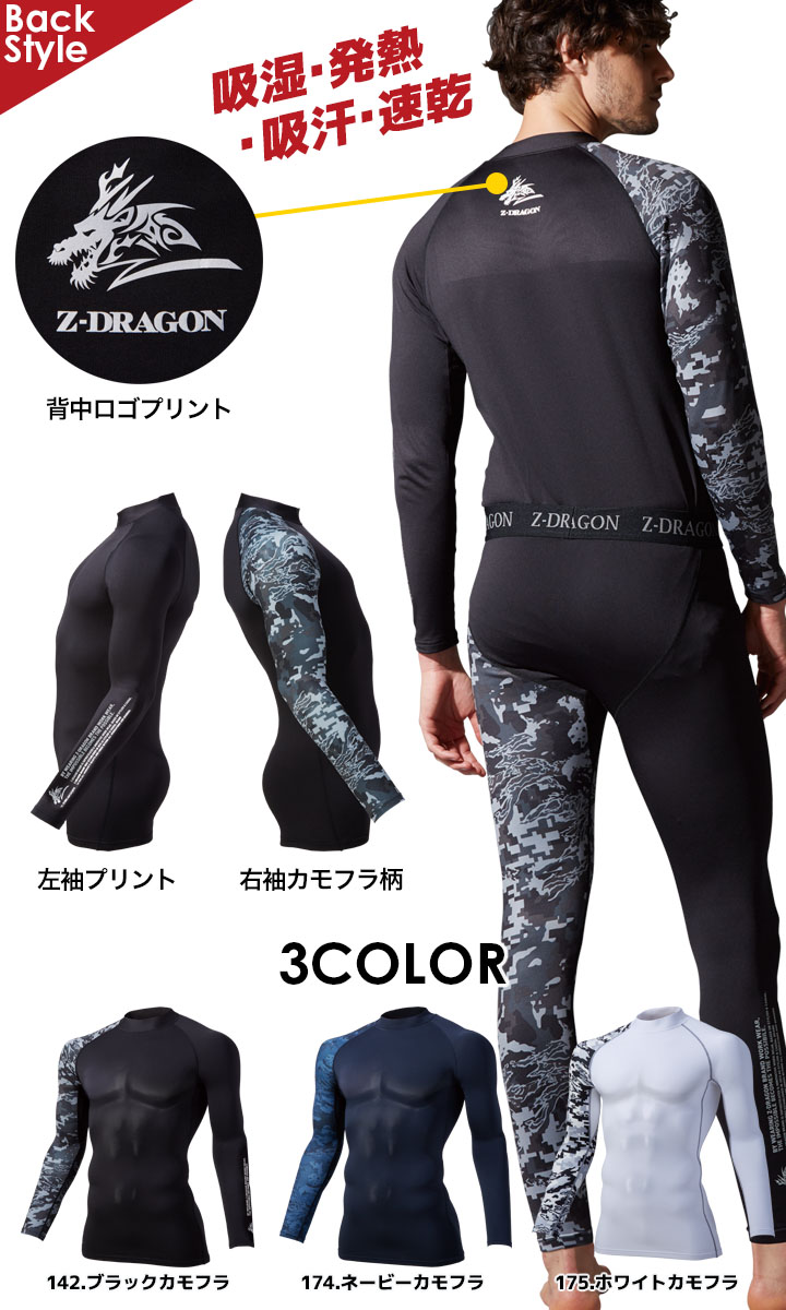 インナーシャツ 長袖 Z-DRAGON 78134 ストレッチ コンプレッション カモフラ柄 吸湿 発熱 吸汗 速乾 消臭 抗菌 男女兼用 秋冬 作業服 自重堂 即日発送
