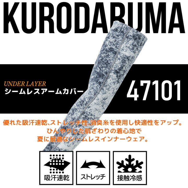 クロダルマ シームレス アームカバー インナー アームガード コンプレッション 47101 ストレッチ 接触冷感 吸汗速乾 春夏 47129・47100・4101 作業服 即日発送