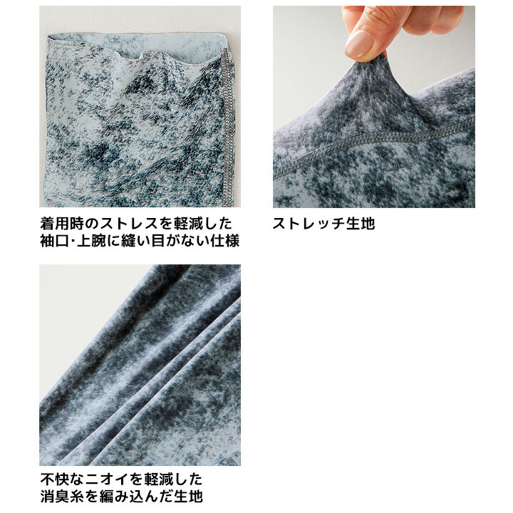 優れた吸汗速乾性、ストレッチ性、消臭糸を使用し快適性をアップ