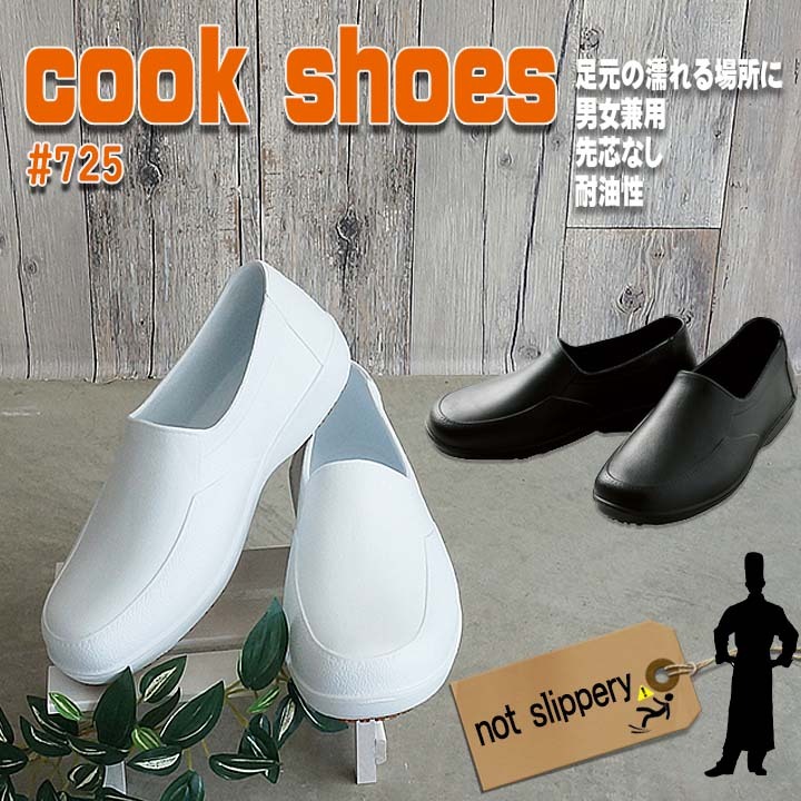 厨房シューズ 軽量 丸洗いできる クロダルマ 725 耐滑 耐油 超軽量 滑りにくい コックシューズ キッチン レストラン 飲食業