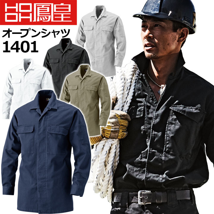 オープンシャツ 鳳皇 1401 村上被服 綿100% コットン 胸ポケット付き 秋冬 長袖 作業服 作業着 4L-6L