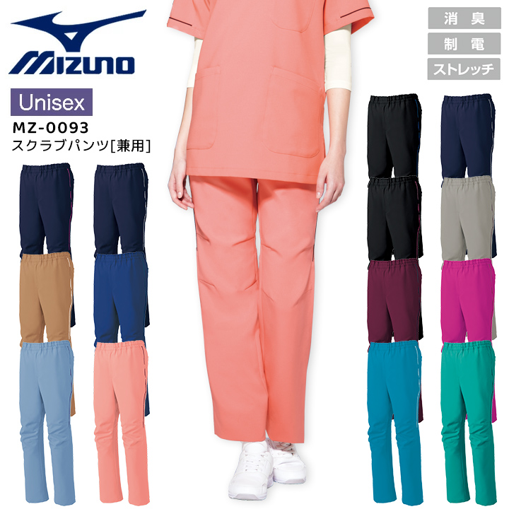 ミズノ パイピング入りスクラブパンツ 男女兼用 MZ-0093 ストレッチ 制電 消臭 医療用白衣 医者 看護師 病院 MIZUNO【送料無料】