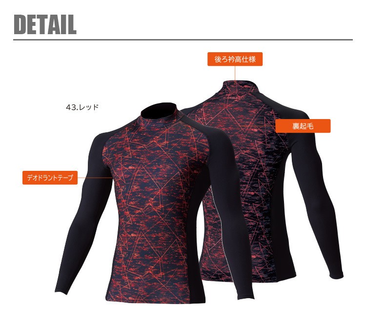 冬用 長袖インナーウェア ハイネック SOWA 7095-42 G.GROUND コンプレッション メンズ 消臭 裏起毛 吸汗 速乾 ストレッチ 作業服 作業着 送料無料