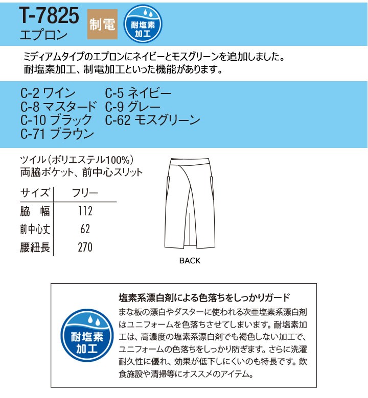 エプロン arbe アルべ T-7825 男女兼用 カフェ 飲食店 サービス業 制服 レストラン ユニフォーム レディース メンズ 制電 耐塩素加工 チトセ