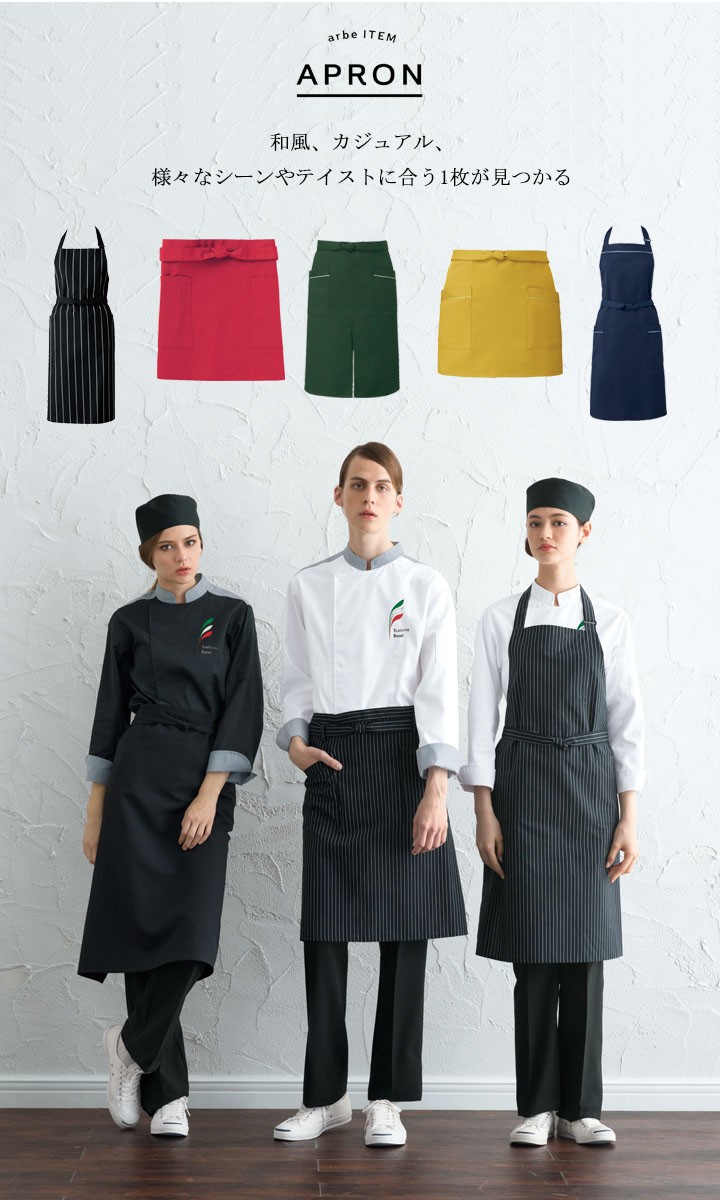 エプロン arbe アルべ T-7826 男女兼用 カフェ 飲食店 サービス業 制服 レストラン ユニフォーム レディース メンズ 制電 耐塩素加工 チトセ