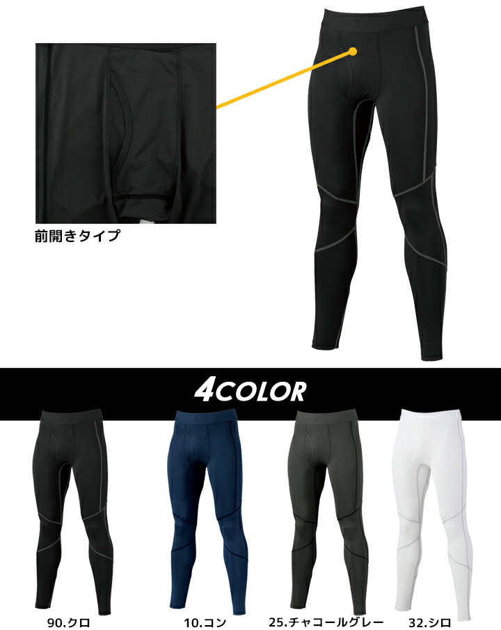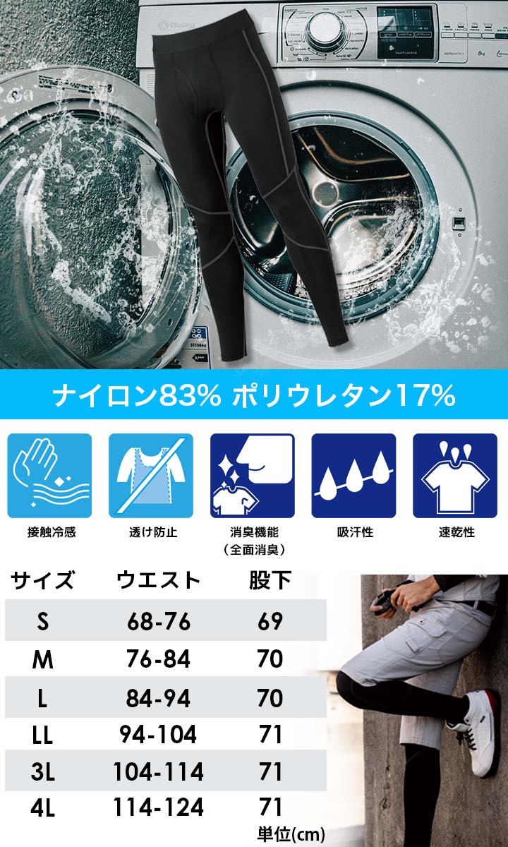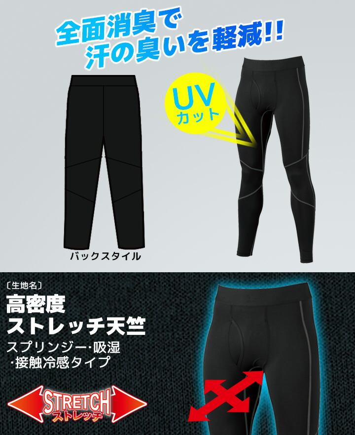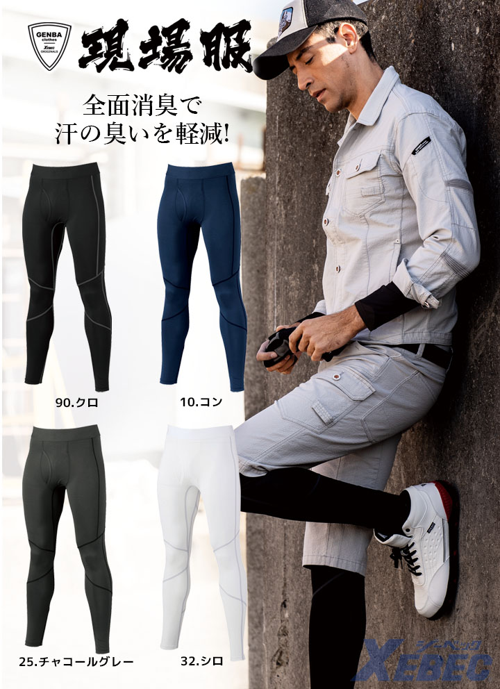 インナーパンツ レギンス メンズ 夏用 接触冷感 ジーベック 6615 吸汗速乾 透け防止 消臭 ストレッチ アンダーパンツ コンプレッション 春夏 作業服 XEBEC