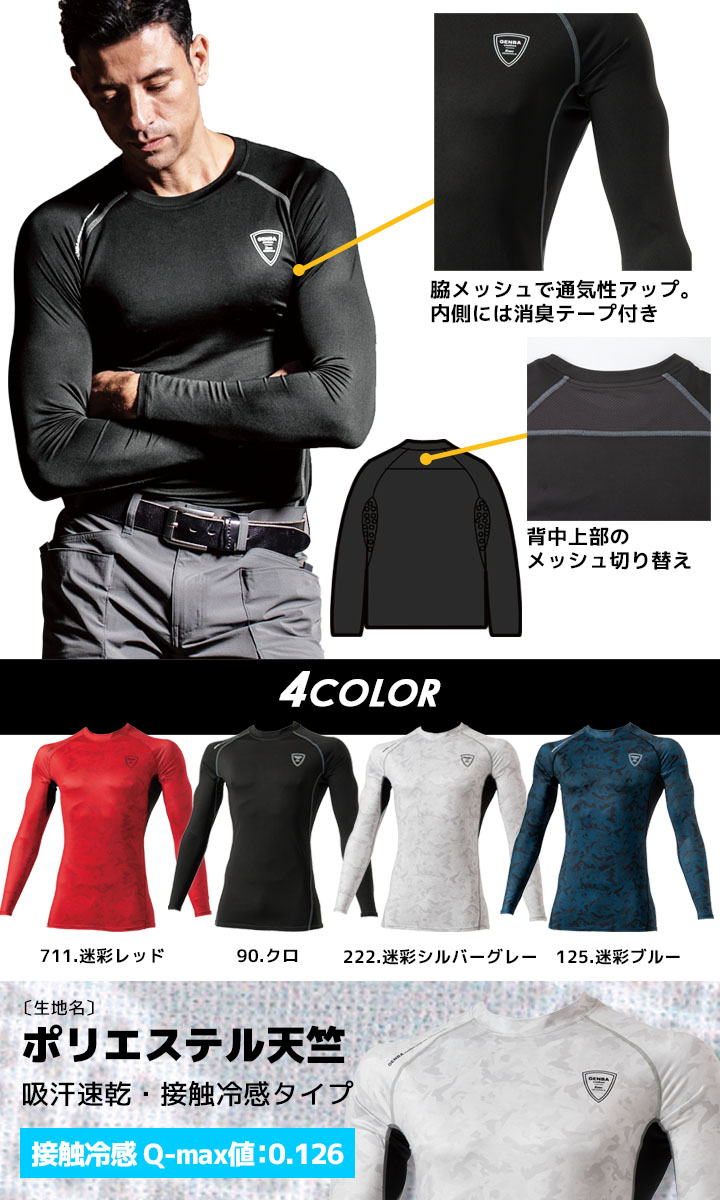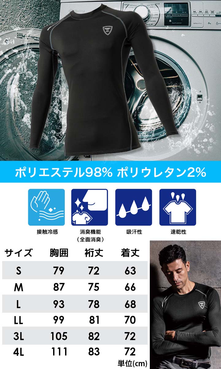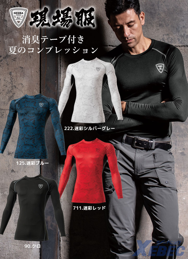 インナーシャツ 長袖 メンズ 夏用 接触冷感 ジーベック 6630 吸汗速乾 消臭 脇メッシュ 背中メッシュ ストレッチ アンダー コンプレッション 春夏 作業着 XEBEC