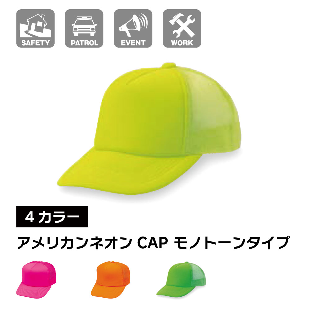 アメリカンネオンキャップ モノトーンタイプ 防犯 パトロール 蛍光色 アイキャッチ