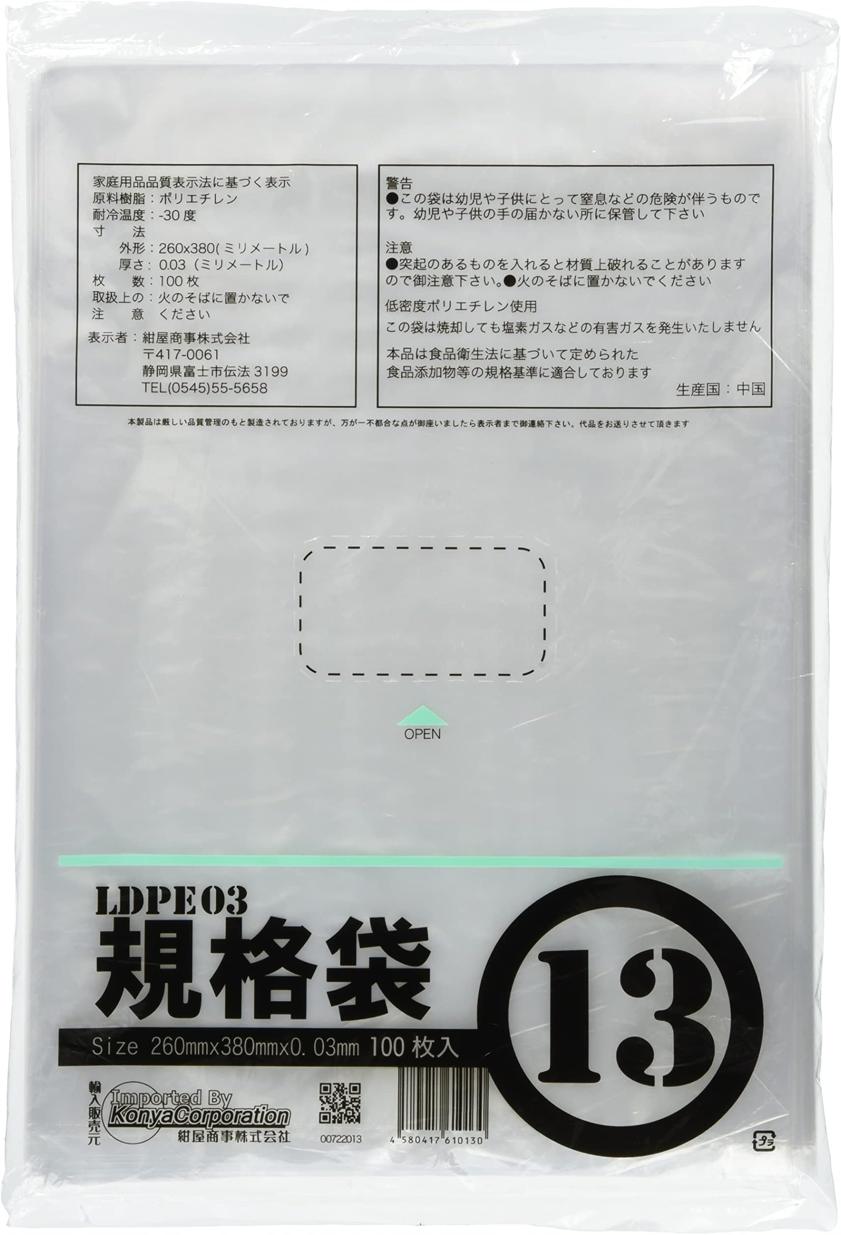 紺屋商事 PE規格ポリ袋03透明13号 100枚 0.03x260x380mm A4フラットファイルが入るサイズ 規格袋 ポリ袋 JIS・食品衛生法適合 透明 袋 722013