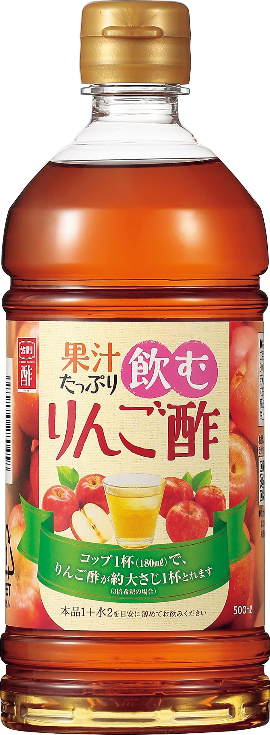 商品の形状:液体ブランド:内堀醸造風味:果汁たっぷり飲むりんご酢液体容量:500 ミリリットル商品の推奨用途:飲む酢商品の個数:1ユニット数:1 本商品の重量:600 グラムパッケージ情報:ペットボトルパッケージ重量:0.6 キログラムブランド: 内堀醸造梱包サイズ: 19 x 6.8 x 6.8 cm; 600 g保存方法: 直射日光を避けて保存してください。商品タイプ: 液体容器の種類: ペットボトルメーカー: 内堀醸造原材料: りんご果汁、りんご酢/香料商品の重量: 600 g原材料:りんご果汁、りんご酢/香料内容量:500ml商品サイズ 高さx奥行x幅 :19.5cm×7.2cm×7.2cm大さじ1杯 15ml あたり:エネルギー…23kcal、たんぱく質…0g、脂質…0g、炭水化物…5.8g、食塩相当量…0.004gブラント名: 内堀醸造自然の甘さを大切に、さらりと美味しく飲みやすく仕上げました。りんご果汁からメーカーでりんご酒 酢もろみ を醸造し、更にそのりんご酒をメーカーでもう一度醸造してりんご酢にしました。そのりんご酢を飲みやすくする為、りんご果汁を加えました。甘味料を使用しておらず、ベースの酢も果汁からできているので、甘さがしつこくなくとても飲みやすいタイプの飲む酢です。水で薄めて飲むのはもちろん、炭酸割りや原液をアイスなどのデザートにかけてもよく合います。大さじ1杯 15ml あたり:エネルギー…23kcal、たんぱく質…0g、脂質…0g、炭水化物…5.8g、食塩相当量…0.004g