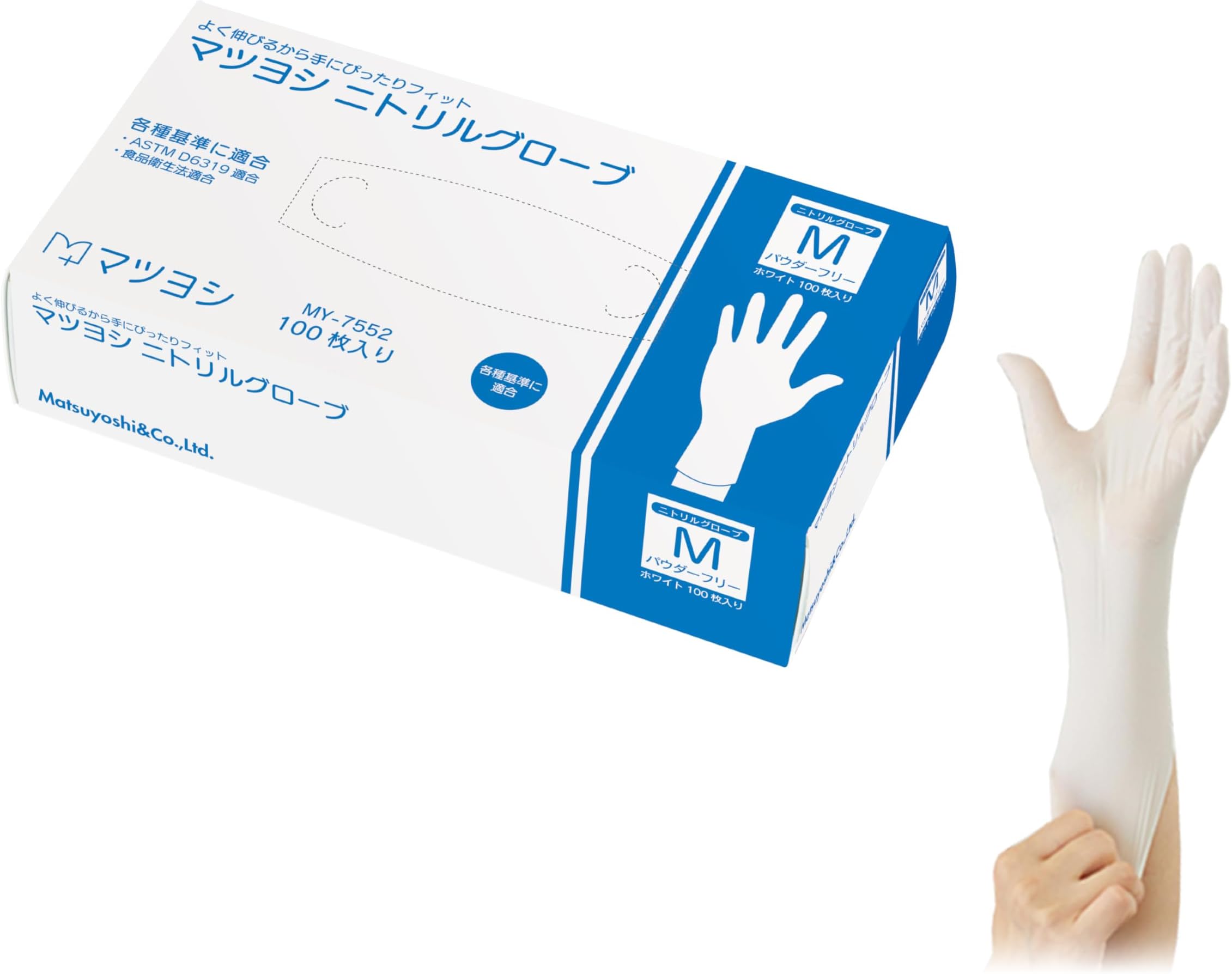 [マツヨシ] 使い捨て手袋 ニトリルグローブ ホワイト 粉なし 100枚入り 病院採用商品 (松吉医科器械) (M, 新パッケージ) (M) Mサイズ (x 100)