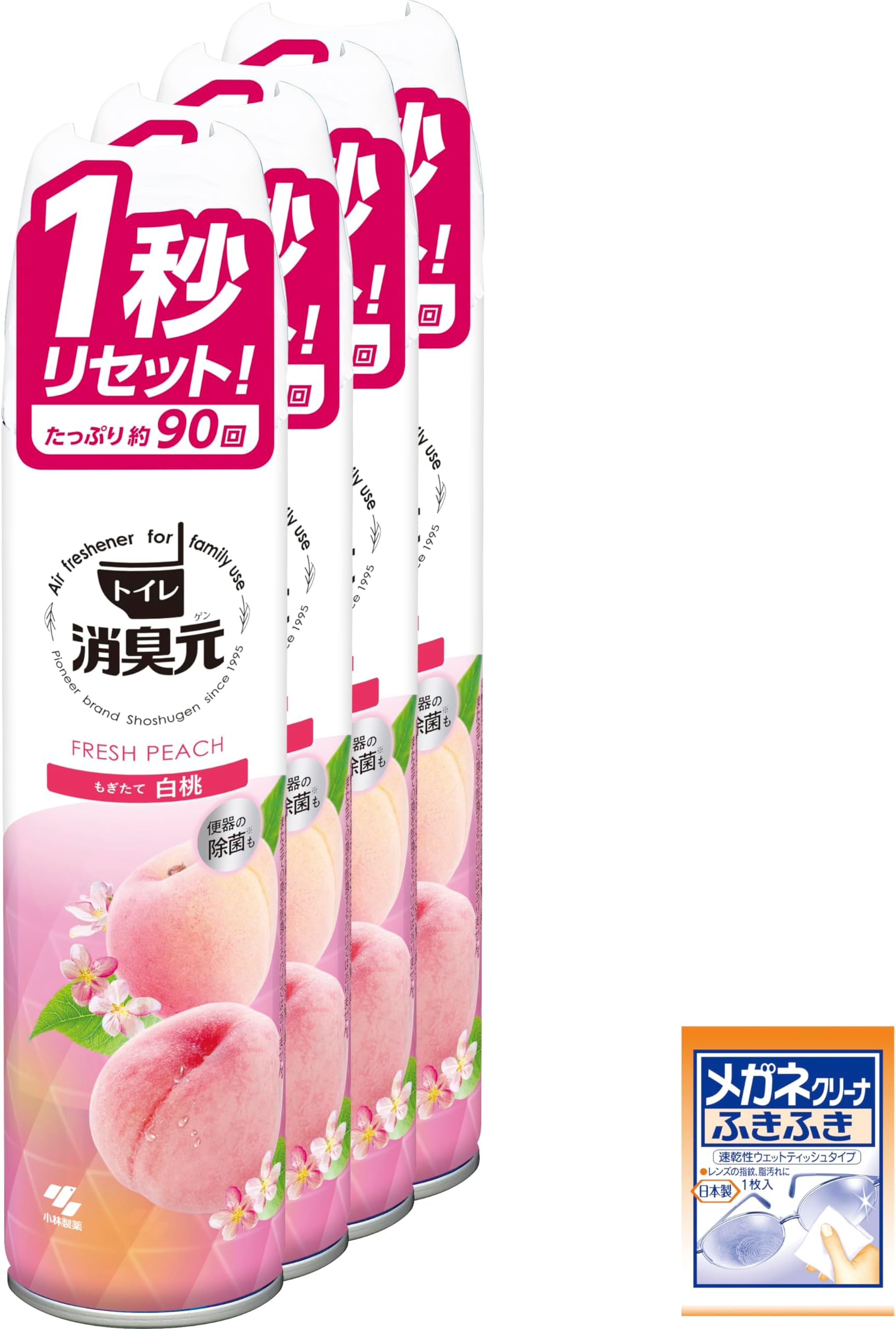 【まとめ買い】 トイレの消臭元 スプレー もぎたて白桃 トイレ用 消臭スプレー 消臭芳香剤 280ml×4個(おまけ付) 小林製薬