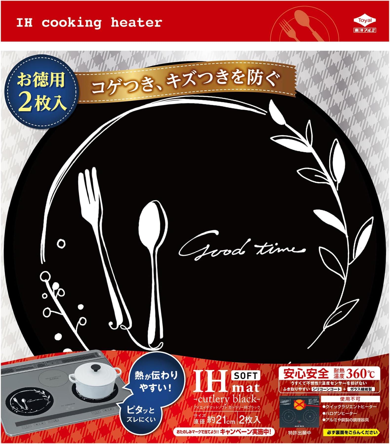 東洋アルミ IH マット IHクッキングヒーター シート 水洗い 薄いsoftタイプ カトラリー ブラック 直径約21cm 2枚入 S3133 4)カトラリーブラックNEW