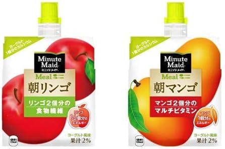 パターン名:【セット買い】朝リンゴ ゼリー 180mlパウチ×6個 + 朝マンゴ ゼリー 180mlパウチ×6個ブランド:ミニッツメイド商品の形状:液体風味:マンゴー, コーラ, アップル商品の個数:2パッケージ情報:バッグ商品体積:180 ミリリットルユニット数:1 個商品の重量:360 グラム対象年齢:大人梱包タイプ:バッグブランド:ミニッツメイド商品の重量:360 g商品タイプ:液体成長期別:大人容器の種類:バッグ容器の種類:バッグメーカー:コカ・コーラ(Coca-Cola)商品の重量:360 g内容量:180gカロリー:40Kcal/100g原材料:砂糖、食物繊維、りんご果汁、脱脂粉乳、発酵乳、寒天、乳酸Ca、増粘多糖類(大豆由来)、香料、酸味料、酸化防止剤(ビタミンC)、甘味料(スクラロース)内容量:180gカロリー:69Kcal/100g原材料:砂糖、マンゴー果汁、マルトデキストリン、脱脂粉乳、発酵乳、寒天、乳酸Ca、増粘多糖類(大豆由来)、酸味料、香料、カロチン色素、ビタミンC、ビタミンE、パントテン酸Ca、ナイアシン、ビタミンB6、ビタミンB1、葉酸、ビタミンB2ヤヨイゲン