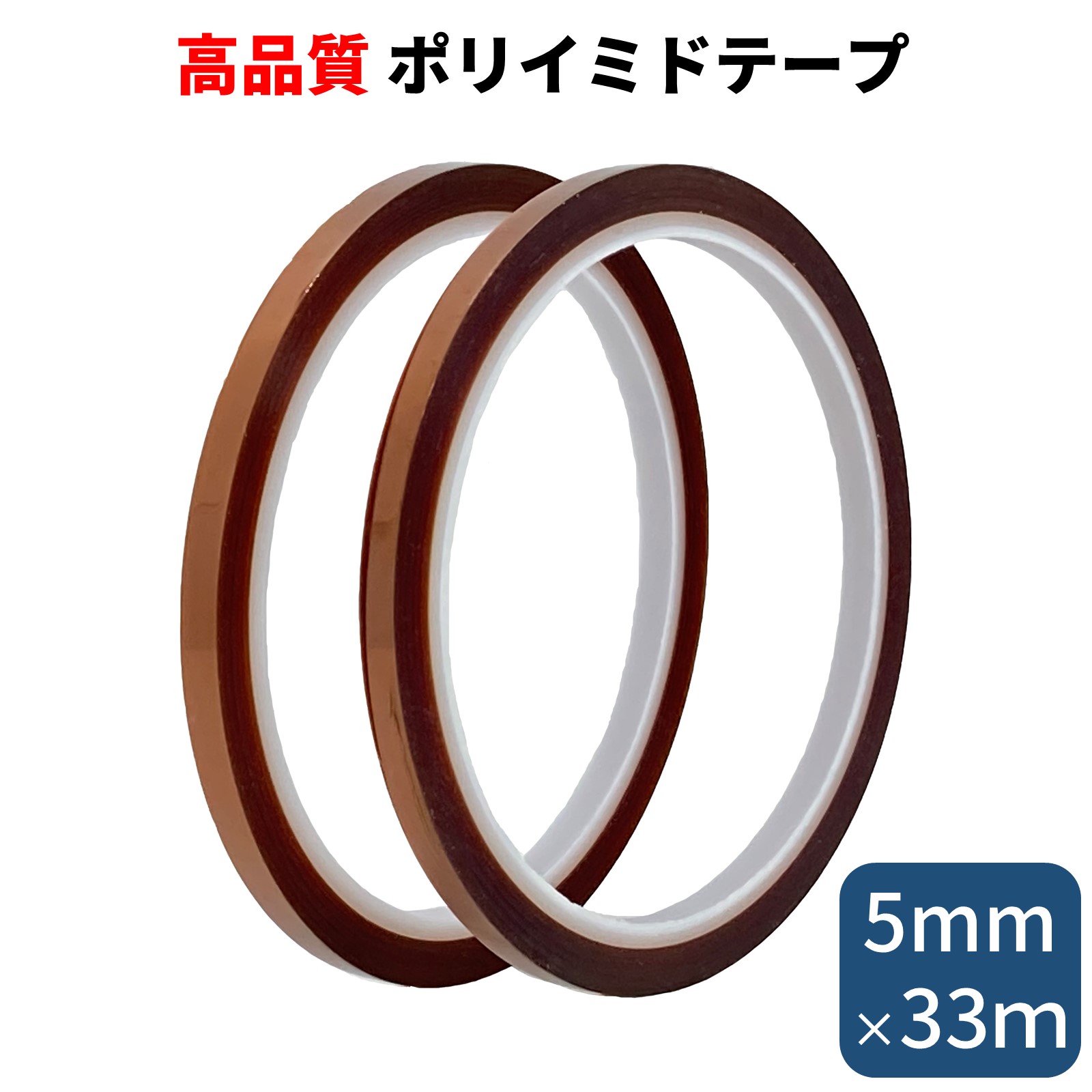 ポリイミドテープ 5mm幅×2個セット 長さたっぷり33m 耐熱テープ 絶縁テープ 電子基板のマスキング はんだ付け養生 HATUSOKU