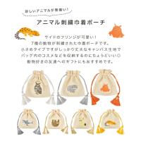 サイドのフリンジが可愛い! 7種の動物が刺繍された巾着ポーチです。 小さめタイプですがしっかり丈夫なキャンバス生地でバッグの中のコスメや小物を収納するのにちょうどいい◎ ギフトやプレゼントのラッピング袋としても使えたりするので、動物好きの友達へのギフトにもおすすめです。