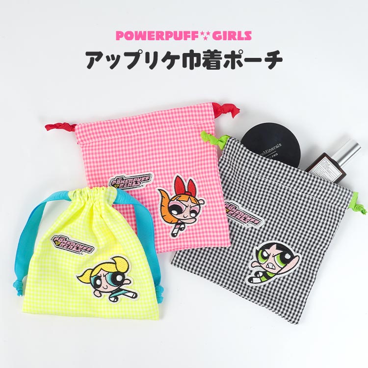 強くてかわいい正義の味方★超強力3人娘のパワーパフガールズが、キュートなアップリケ巾着ポーチになって登場!バッグの中のコスメなどを収納するのにちょうどいいサイズ♪自分にはもちろんギフトにもオススメ♪