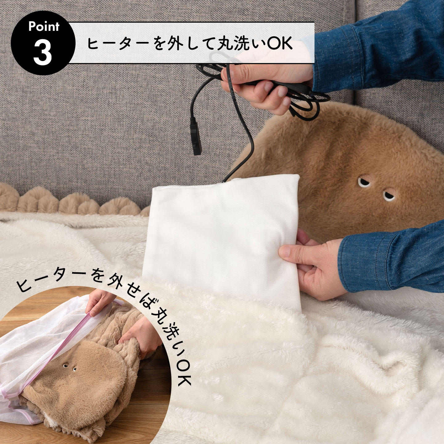 カバーは丸洗いできるので、衛生面もバッチリです。丸洗いする際は必ずヒーターを取り外してください。