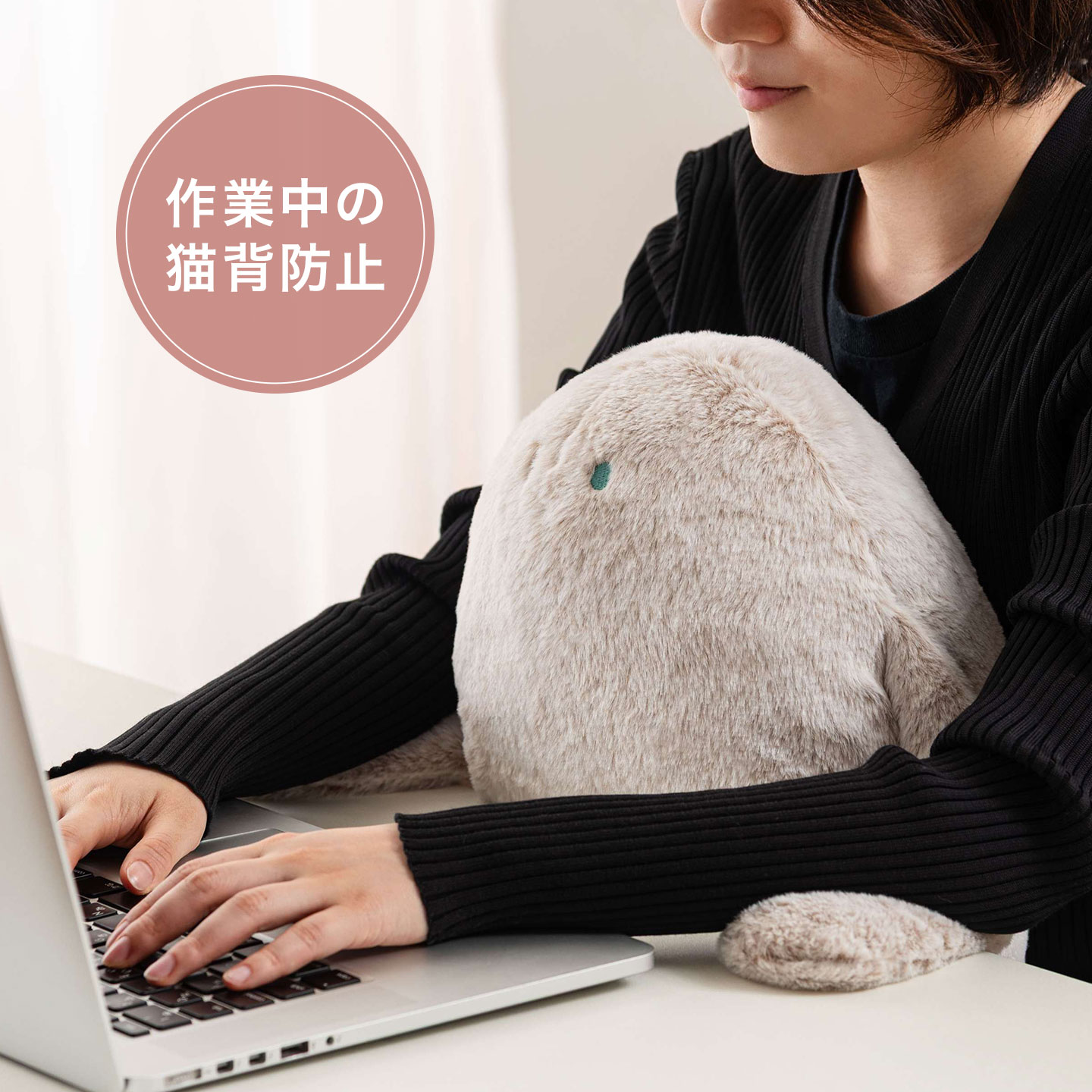 デスク作業の際にデスクとお腹の隙間に挟むことで自然と背筋が伸びやすくなり、猫背姿勢を防止してくれます。正しい姿勢を保つことで、肩こりや腰痛の対策にもなります。
