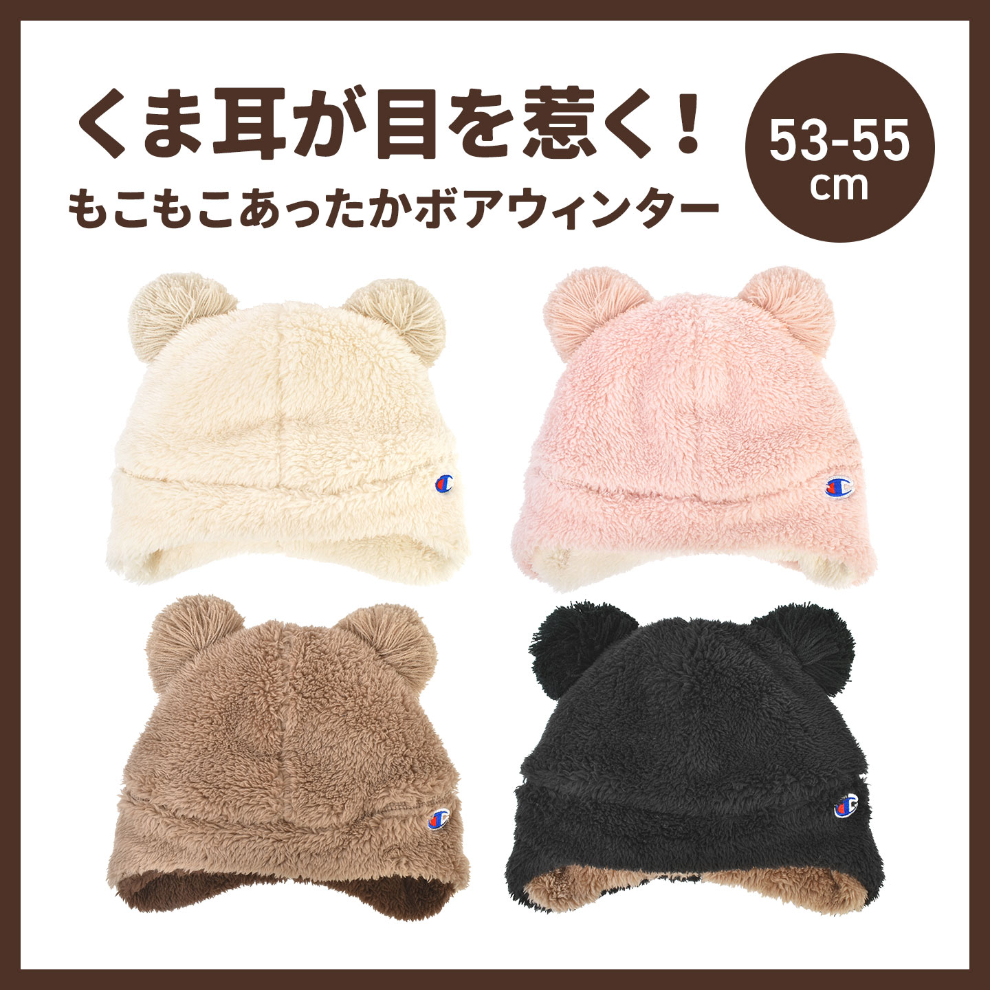 champion ニット帽 キッズ 耳あて ボンボン チャンピオン ボア 耳当て 帽子 子供 くま耳 かわいい 53 54 55 cm