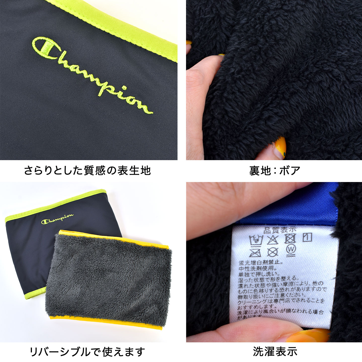 Champion チャンピオン ネックウォーマー キッズ 男の子 ジュニア スポーツ 消臭 抗菌 防寒 リバーシブル ボア
