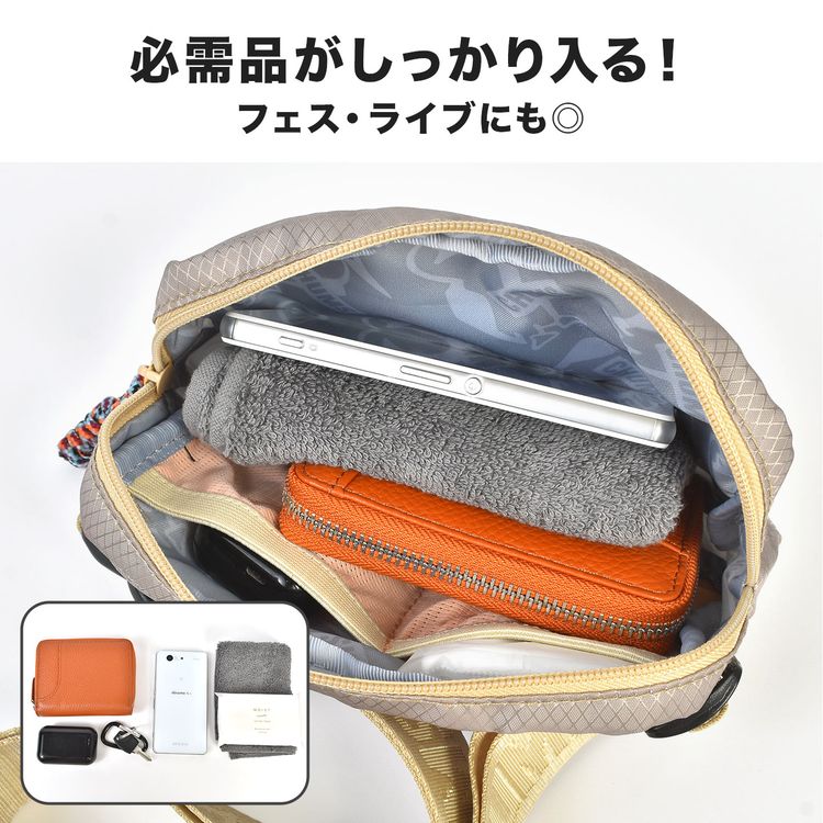 必需品だけをコンパクトに持ち運べるサイズ感。フェスやライブにも◎