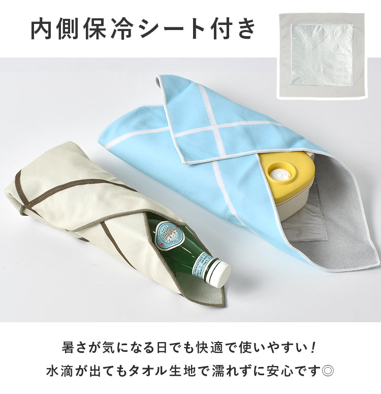 風呂敷 保冷 お弁当 くっつきタオル くっつくクロス 保冷シート ランチクロス ペットボトル 折り畳み傘 ボトル カバー 48cm