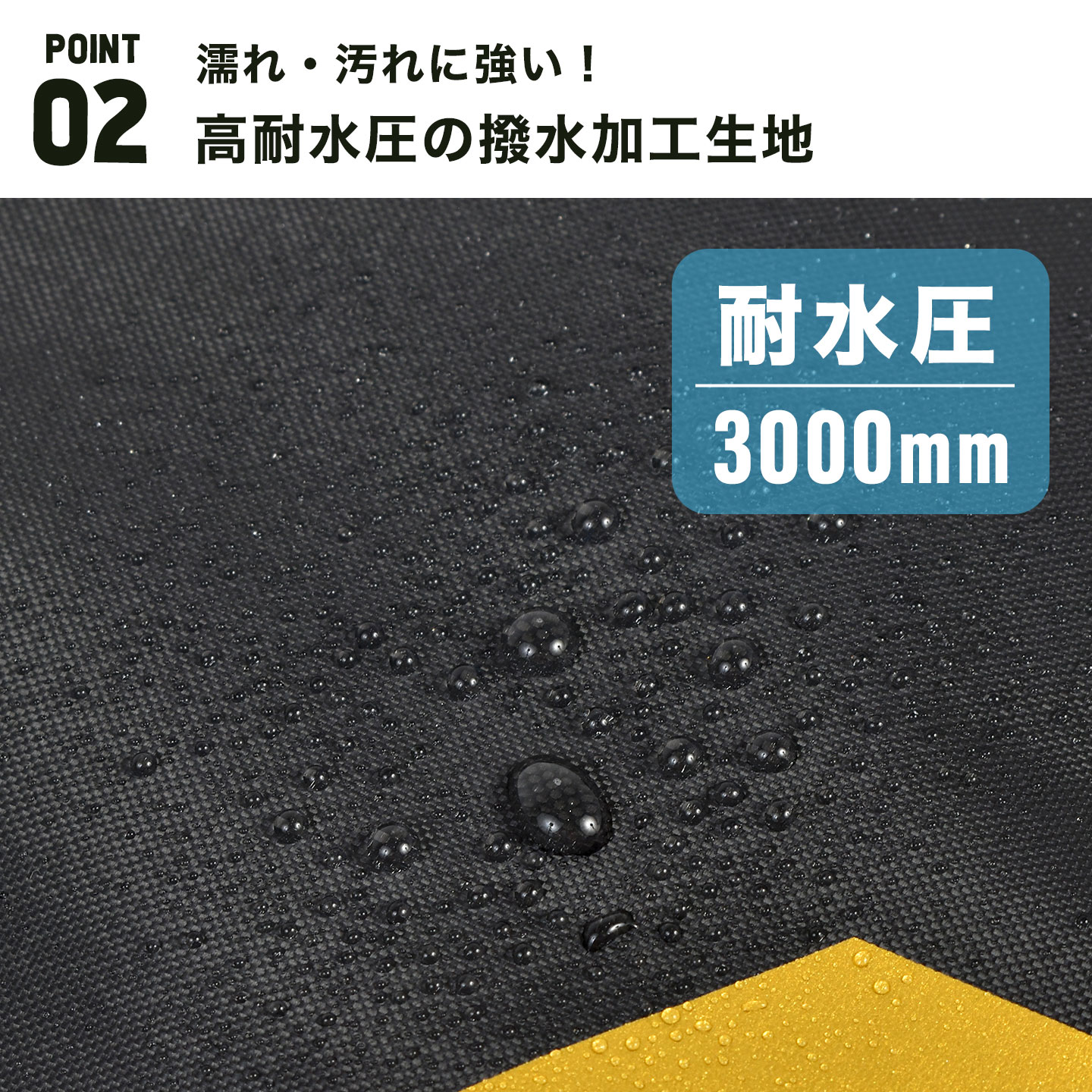 汚れた荷物を入れても、海やプールで濡れても大丈夫!撥水に加えて3000mmの耐水圧性能もあるので、強い雨に降られても水が染み込みにくいです。
