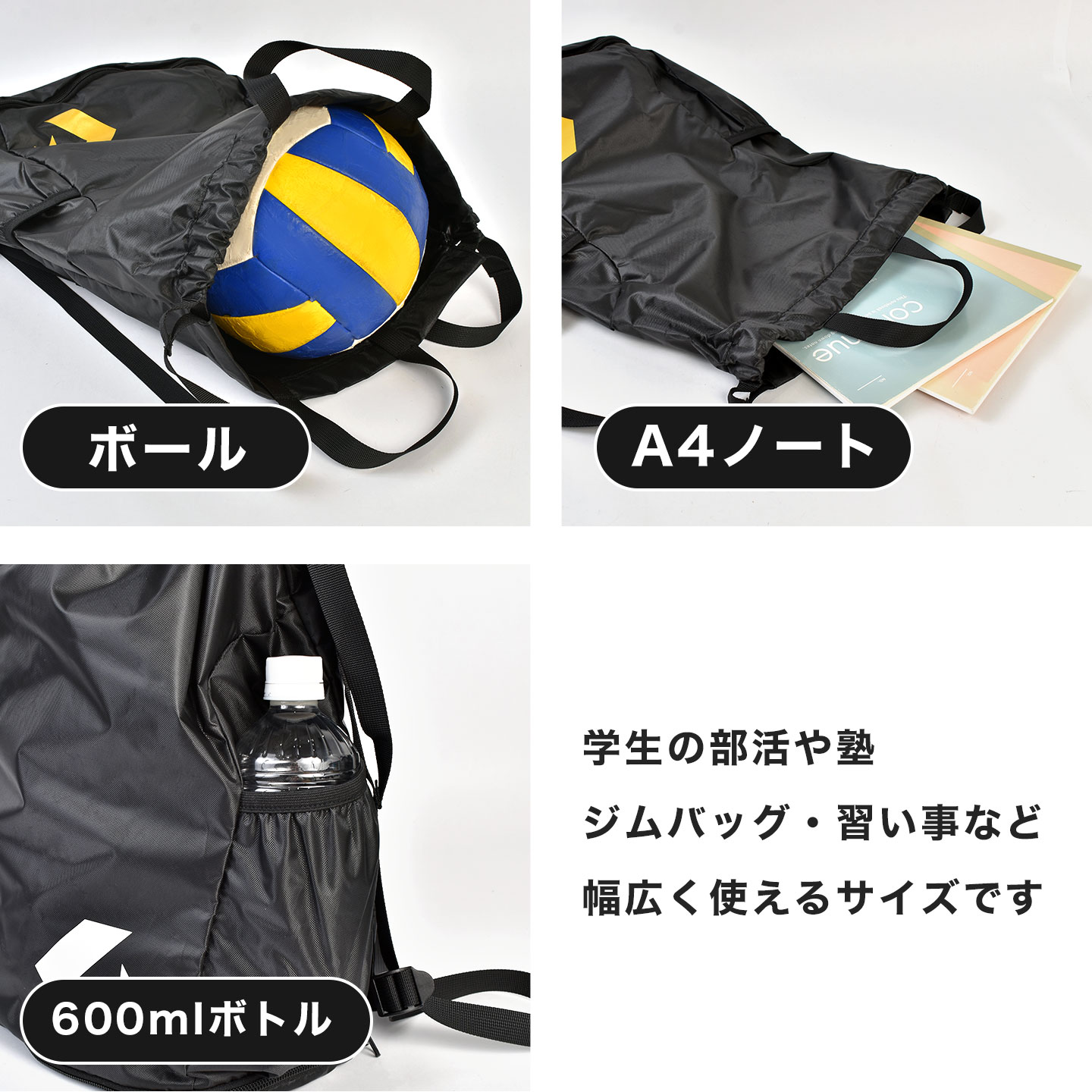 メインルームにはバスケットボール、シューズポケットにはバッシュなどの大きな靴も入る大容量!両サイドのポケットには600mlボトルも入ります。お子様の部活や通学、塾や習い事などはもちろん、大人のジムバッグにも。