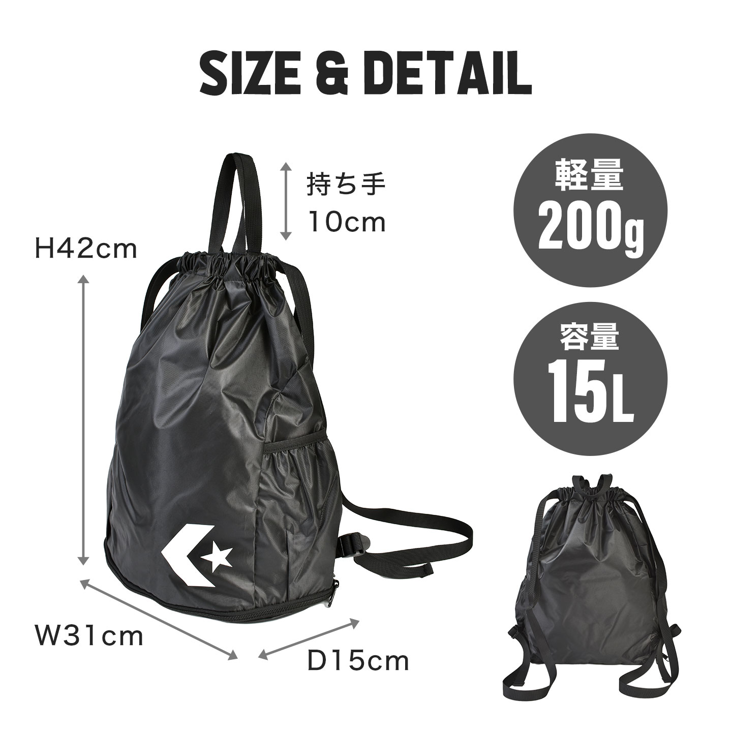 ナップサック コンバース プールバッグ ジムバッグ 撥水 シューズ 収納 二層式 部活 軽量 スポーツバッグ リュック リュックサック 防水 大容量 バスケット ボール バッシュ 体操服入れ バックパック 2ルーム 二ルーム 2層式 小学生 中学生 高校生 大学生 男の子 女の子 大人 キッズ ジム 習い事 水泳 プール 海 通学 CONVERSE ナップザック 巾着バッグ ビーチバッグ 男女兼用 高耐水圧 3000mm 15L 防汚 男子 女子 おしゃれ スポーツ ブランド シューズ収納 シューズ入れ付き 水着入れ 軽い 黒 ブラック 8歳 9歳 10歳 130cm 140cm 150cm 160cm 170cm 180cm 10代 20代 30代 小学 4年 5年 6年 四年 五年 六年 生 小学校 中学校 高校 大学 高学年 学生 学校 入学 準備 入学準備 子ども 子供 こども ジュニア 息子 娘 孫 女性 ガールズ レディース girl 男性 ボーイズ メンズ boy バースデー 誕生日 プレゼント プチ ミニ ギフト クリスマス クリスマスプレゼント お洒落 シンプル かっこいい エメラルド ゴールド ホワイト 無地 ワンポイント ロゴ バッグ バック かばん 鞄 bag はっ水 はっすい ぼう水 スイムバッグ スイミングスクール サッカー フットサル ダンス バスケ クラブ 丈夫 頑丈 旅行 1泊 遠足 合宿 遠征 キャンプ アウトドア レジャー 春 夏 秋 冬 C2557023