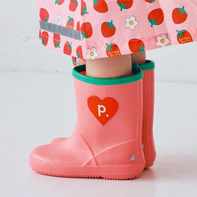 カラフルな配色と大きなモチーフがかわいい!子供服ブランド『p.premier(ピードットプルミエ)』の、雨の日が楽しくなるような明るいデザインのレインブーツ。