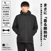 断熱性・透湿性に優れた画期的な断熱シート『Y-WARM』を表地と裏地の間に挟み込むことで、薄さと暖かさを両立。まさに『着る断熱材』のような防寒ジャケット。表地には撥水加工もほどこしており、耐水圧10000mm、透湿度5000g/m2・24hrとレインウエア並みの防水性能も備えています。