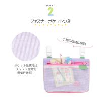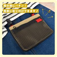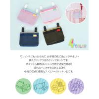 ワンピースにもつけられて、お子様の肌にあたりがやさしい角丸クリップつきのクリップポッケです。ポケット&裏地はメッシュ生地で通気性抜群!濡れたハンカチを入れてもOK!小物の収納に便利なファスナーポケットつきです。